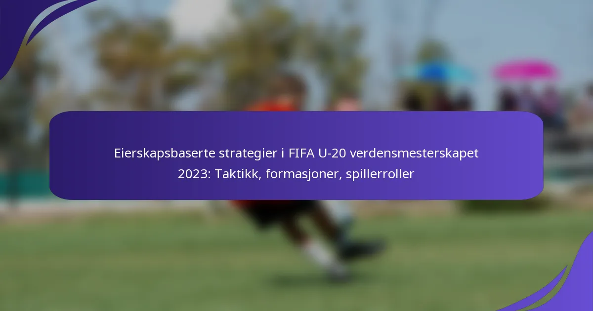 Eierskapsbaserte strategier i FIFA U-20-VM 2023 fokuserer på å opprettholde kontroll over ballen for å skape scoringsmuligheter samtidig som de minimerer risiko. Disse taktikkene legger vekt på korte pasninger, bevegelse uten ball og strategisk posisjonering for å dominere spillet og diktere tempoet i kampen.